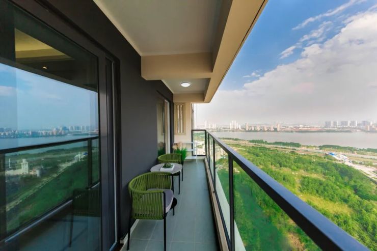 站在阳台上凭栏眺望,浩渺江景与湖景尽收眼底,皆在预示着将来的美好生活已蔚然成型。