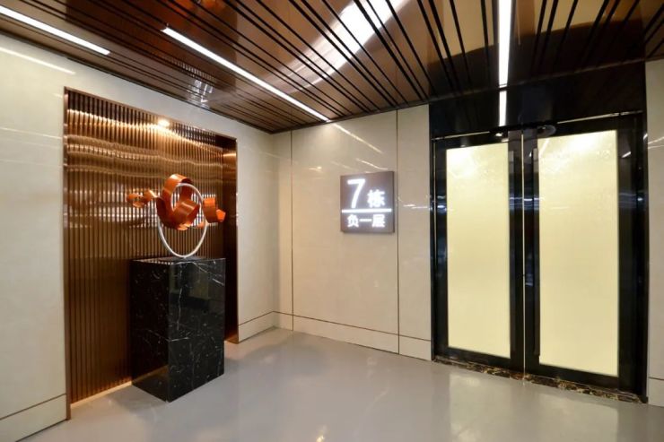 从室内的园景,步入奢华的大堂时,又是另一番天地。整个大堂的挑高达到近6米,地面以大理石铺设,墙面上精致的抽象画,都让空间整体充满着设计感。