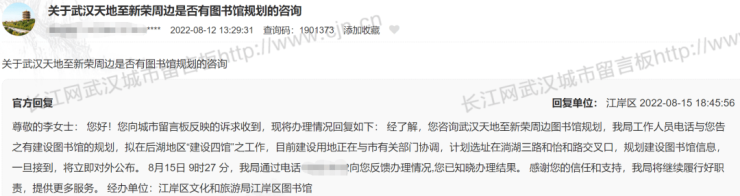 8月23日消息,搜狐焦点获悉,针对网友对家门口是否有图书馆规划的提问,相关部门一一进行了回应。快来看看有你家附近的吗?