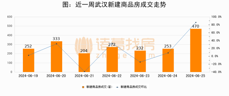 【武汉成交日报】06月25日新房成交470套;涨价房源85套