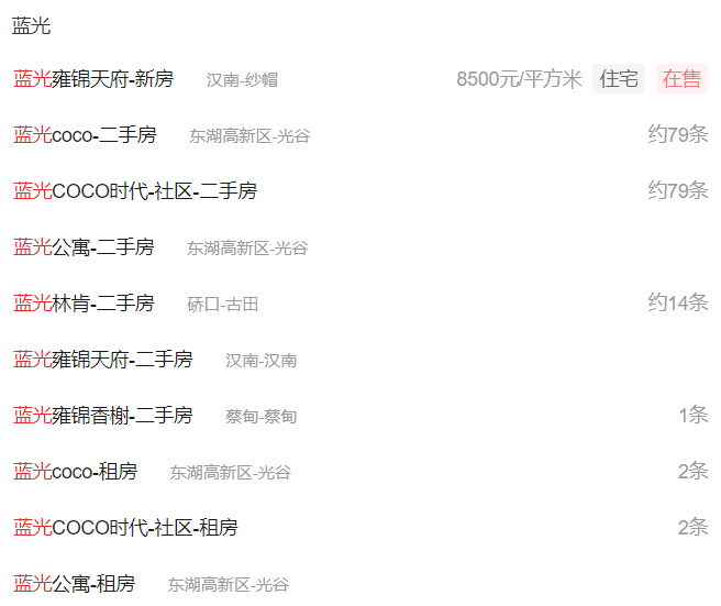 据悉,蓝光在武汉在售新房项目不多,位于汉南区,为蓝光雍锦天府。除此之外还有蓝光林肯、蓝光coco等已建成的小区。