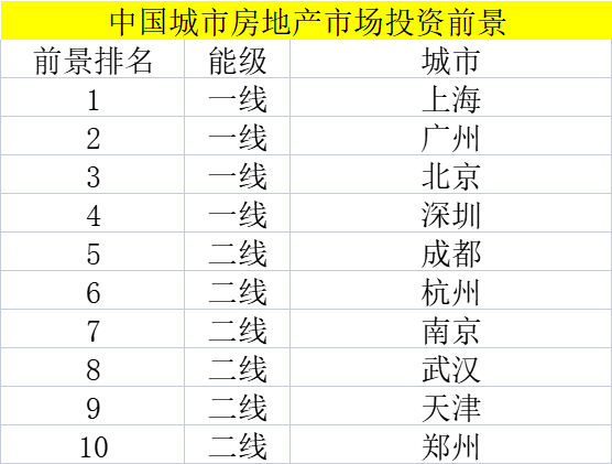 前景排行前10的城市和上年相比变化不大,依旧主要分布在京津冀、长三角、珠三角三大经济圈。具体来看,四个一线城市依旧处于先进位置,其中上海、北京和深圳三城与去年排位保持一致,分别排在排名前列、二、三位,广州超越杭州升至第四位,杭州则降至第五位。