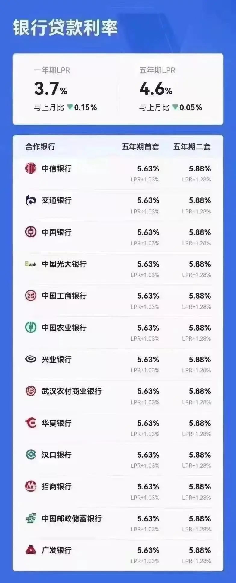 第二次是在2022年1月,中国人民银行宣布5年期以上LPR从4.65%下调为4.6%,武汉首套利率从5.73%降至5.68%,二套利率从5.98%降至5.93%。