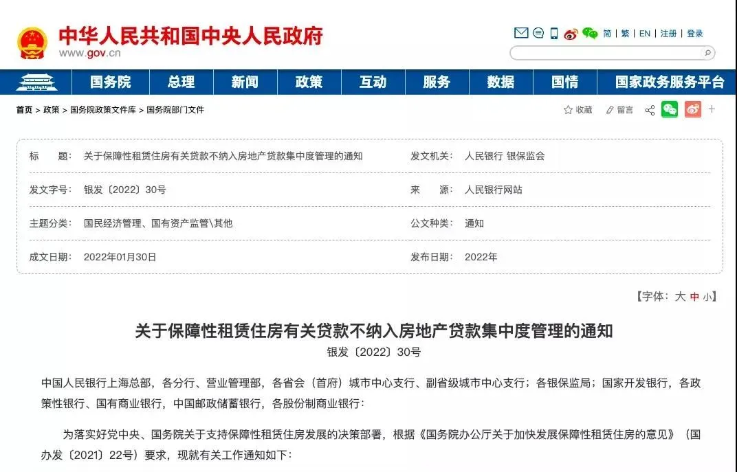 近日,中国人民银行、中国银行保险监督管理委员会两部委联合发布了《关于保障性租赁住房有关贷款不纳入房地产贷款集中度管理的通知》