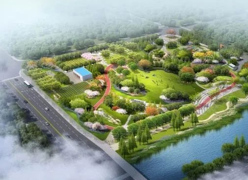 管理服务区中设置两处五人足球场和儿童乐园;滨水游览区内,在慢行道附近建设滨水广场和缓坡草坪,在东南高点还设置观景平台。