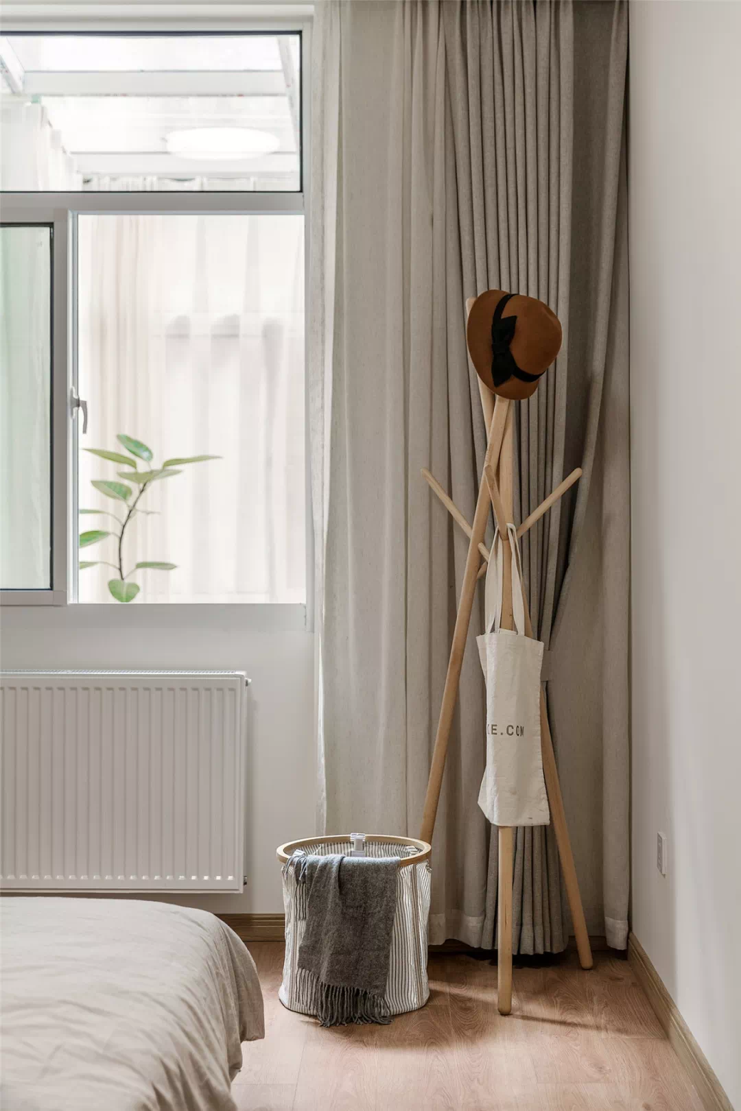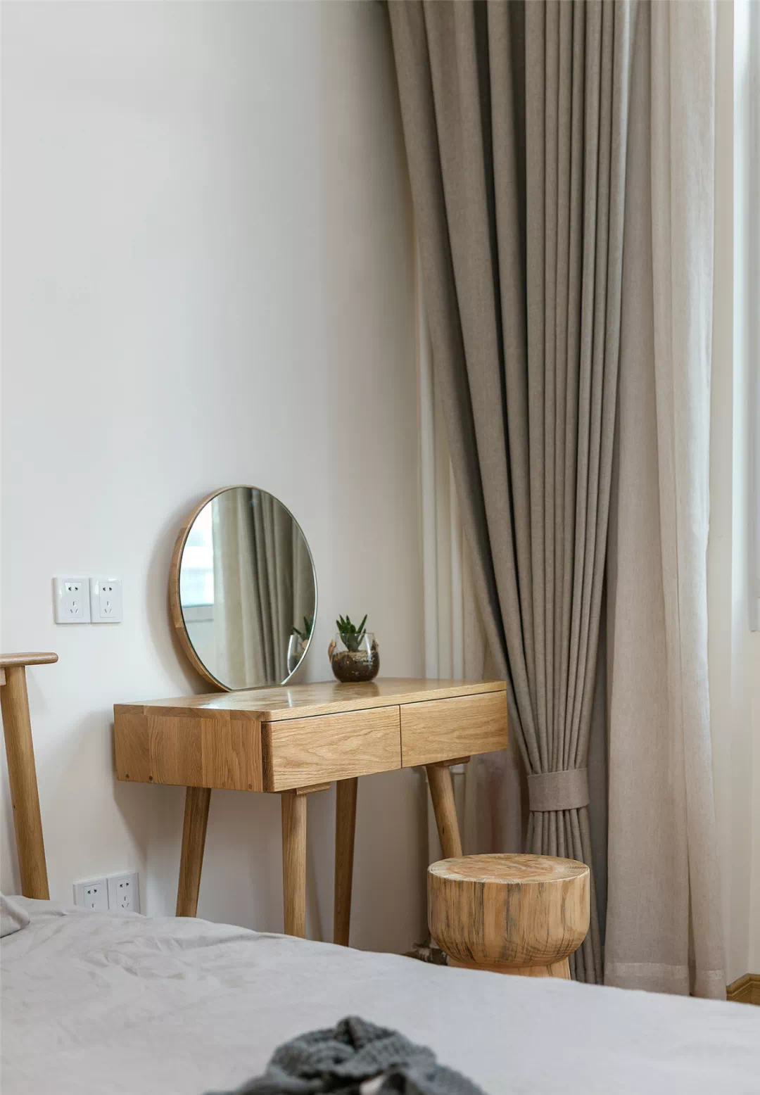 简单的化妆台和衣帽架满足日常的需求,原木风给人感觉很舒服、很干净。