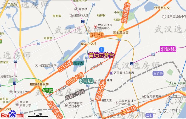 自驾: 项目周边道路通畅,自驾方便,项目南面是健美街与华岭路的十字路口,沿着华岭路往南约240米就到和谐大道,约800米达武汉大道,项目沿着南面的健康街往西再往北走塔子湖东路可到三环线入口,大约2公里。