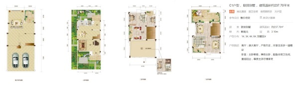 别墅建筑风格为经典的草原赖特风格,草原赖特风源自上世纪30年代的美国, 赖特将建筑看成是有机生命,融入自然环境,与自然共生长,立面选用部分干挂石材、PK砖等材料,采用退台式设计结合中西合璧的对称美学,增添建筑的凹凸层次感,赋予别墅庄严厚重的观感,赖特风格延续了建筑的生命,特点是在造型上力求新颖,彻底摆脱常规,在布局上与大自然结合,使建筑与周围环境融为一体。 【在售信息】C1户型, 联排别墅, 建筑面积约237.70平米 5室2厅3卫