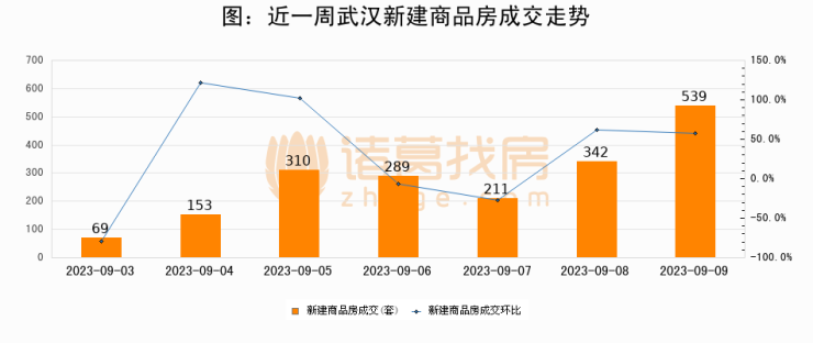 【武汉成交日报】09月09日新房成交539套;涨价房源180套