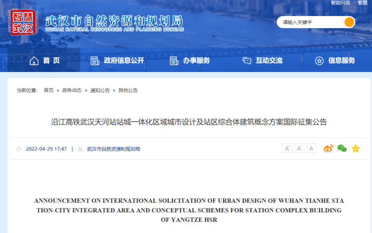 近日,根据武汉市自然资源和规划局发布的公告,沿江高铁武汉天河站站城一体化区域城市设计及站区综合体建筑面向国内外征集概念方案。