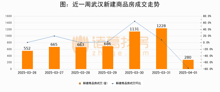 【武汉成交日报】04月01日新房成交280套;涨价房源6套