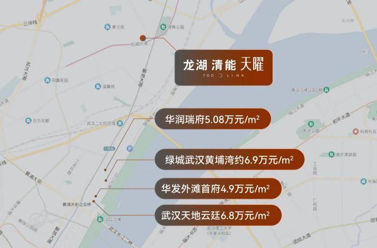 对于板块价值的前瞻性,恰好是天曜两家开发商龙湖和清能的专长所在。不久之前两家开发商合作的龙湖清能·天奕,就已证明这一点。2020年龙湖与清能一起拿下的武昌滨江的地块。这两年武昌滨江进入了高速兑现期,价格直奔5w+。