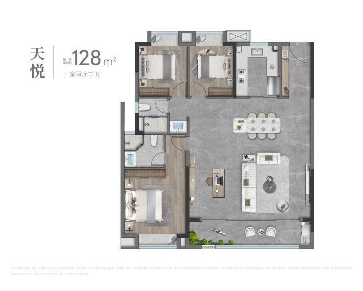 近期即将首开的是建面约116㎡—143㎡的户型,户型均采用三开间朝南,开间较高阔达11.4米。而约6.8米面宽的超大横厅尺度也在同等面积段户型中难得一见,尽显滨江繁华与舒适。此外,部分户型得房率高达82%。