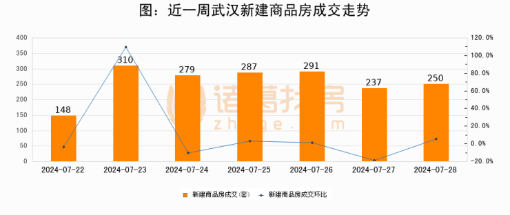 【武汉成交日报】07月28日新房成交250套;涨价房源58套