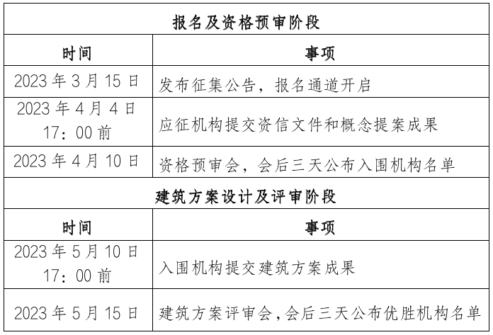 据悉,正式征集公告预计于2月下旬发布,采用“意向邀请 公开报名”方式。活动由报名及资格预审、建筑方案设计及评审、综合评定三个阶段组成。