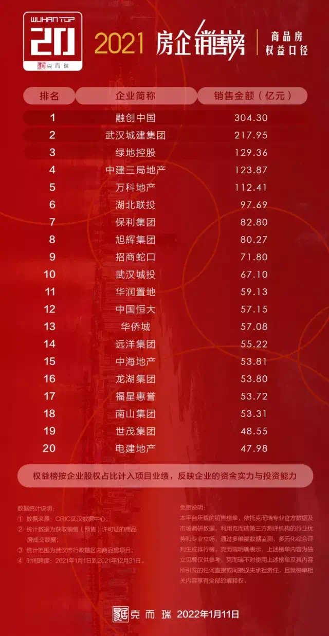 国企合并重组在近年武汉房地产市场并不是新鲜事,较典型的当属武汉城建集团了。2020年9月经武汉市委、市政府批准,整合武汉地产集团、武汉建工集团、武汉二零四九集团等七家企业,组建成立武汉城建集团。重组后的武汉城建凭借在武汉市场的长期深耕能力,参与开发项目量持续居于武汉房企前列,并在此后持续位于企业销量榜前两位。