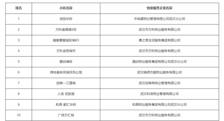 3月23日消息,搜狐焦点获悉,武汉市住房保障和房屋管理局公布了2021年全市物业服务质量考评“十优满意小区”“十差不满意小区”。看看有你家小区吗?