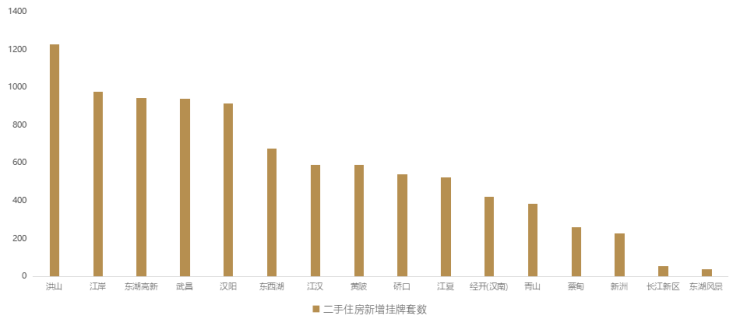 本月洪山区、东湖高新区、东西湖区和蔡甸区的二手住房新增供应量环比减少,其余各行政区均环比增加。其中洪山区新增挂牌二手住房1226套,环比减少0.08%。武汉存量住房最为活跃的5大行政区(江岸区、汉阳区、武昌区、洪山区、东湖高新区)的新增房源挂牌量为4999套,环比增加2.97%,这5大行政区的新增供应量占到了同期二手住房新增供应总量的53.71%,较9月份收窄0.38个百分点。