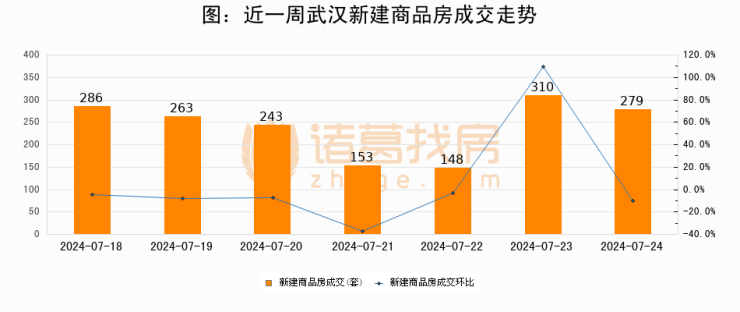 【武汉成交日报】07月24日新房成交279套;涨价房源53套