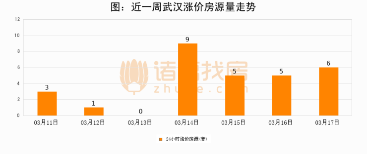 根据诸葛找房数据显示,武汉24小时涨价房源量为6套,较03月16日增加1套,环比上涨20%。与此同时,涨价房源占比小幅扩大,业主信心有所提升。