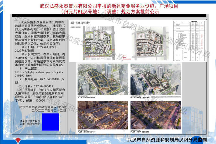 武汉弘盛永泰置业有限公司申报的新建商业服务业设施、广场项目(归元片B包6号地)(调整)规划方案批前公示。武汉弘盛永泰置业有限公司申报的新建商业服务业设施、广场项目(归元片B包6号地)(调整)位于汉阳大道以南、国博大道以北、鹦鹉大道以西、规划肖家湾路以东。