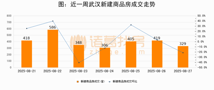 根据武汉市住房保障和房屋管理局数据显示,2025年08月27日武汉新建商品房成交329套,较昨日减少90套,环比下降21.5%