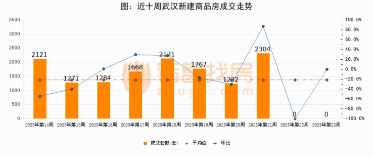 进入2025年第23周(06月02日-06月08日),武汉新建商品房成交0套,较上周持平