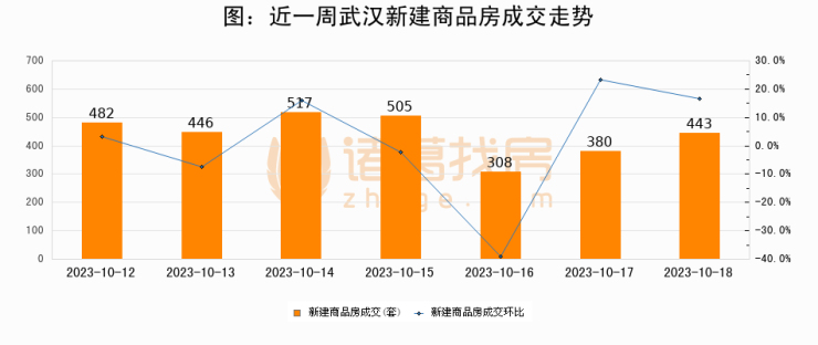 【武汉成交日报】10月18日新房成交443套;涨价房源148套