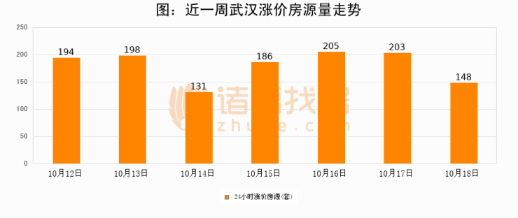 根据诸葛找房数据显示,武汉24小时涨价房源量为148套,较10月17日减少55套,环比下降27.1%。与此同时,涨价房源占比小幅回落,对于购房者来说是一个入市窗口期,购房者可抓住时机入市。
