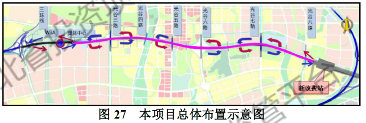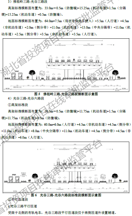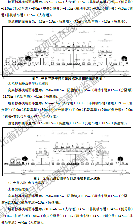 根据环评公示公布的匝道设计,进城方向预计在光谷三路与光谷四路之间、光谷六路与光谷七路之间、光谷七路与光谷八路之间各有一个上桥匝道。目前光谷六路的全互通立交,暂时没有明确施工计划。