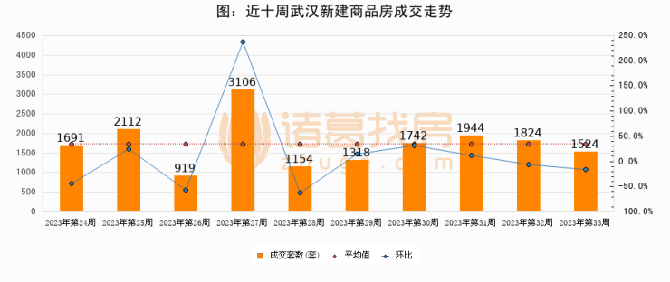 【武汉成交周报】第33周新房成交1524套,涨价房源1148套