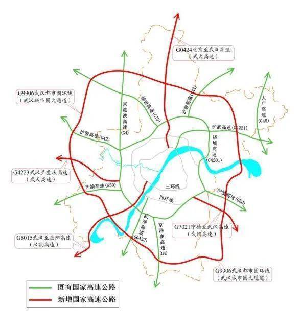 根据2022版《规划》,武汉将新增5条国家高速公路,分别为: