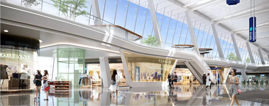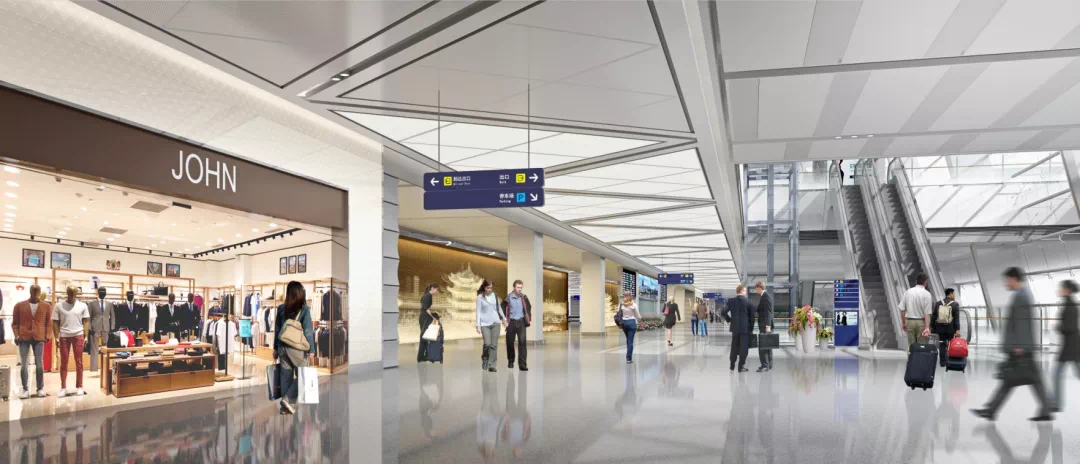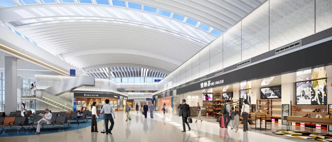 保留现有商业夹层,新增安检区和安检后夹层商业区,以及地下一层餐厅区,形成集餐饮+零售+休闲娱乐为一体的复合业态,满足旅客多样化需求的同时提高机场经济效益。
