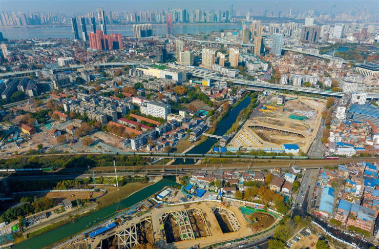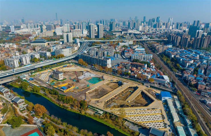 12月20日消息,搜狐焦点获悉,武汉市巡司河流域综合治理二期工程现场,几台大型吊机正在现场作业,污水厂和调蓄池已初现雏形。