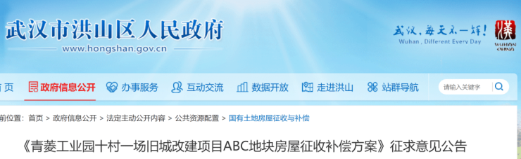 因公共利益需要,根据《国有土地.上房屋征收与补偿条例》《湖北省国有土地上房屋征收与补偿实施办法》、《武汉市国有土地上房屋征收与补偿实施办法>》《武汉市国有土地上房屋征收与补偿操作指引》等相关规定,洪山区人民政府拟对青菱工业园十村一场旧城改建项目ABC地块范围内国有土地上的房屋及附属物实施征收。现拟定房屋征收补偿方案(以下称《方案》)如下:
