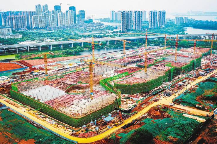 4月18日,搜狐焦点获悉,位于武汉市江夏区的永旺梦乐城工地热火朝天。该项目地上二楼已封顶,预计6月底实现主体结构封顶。