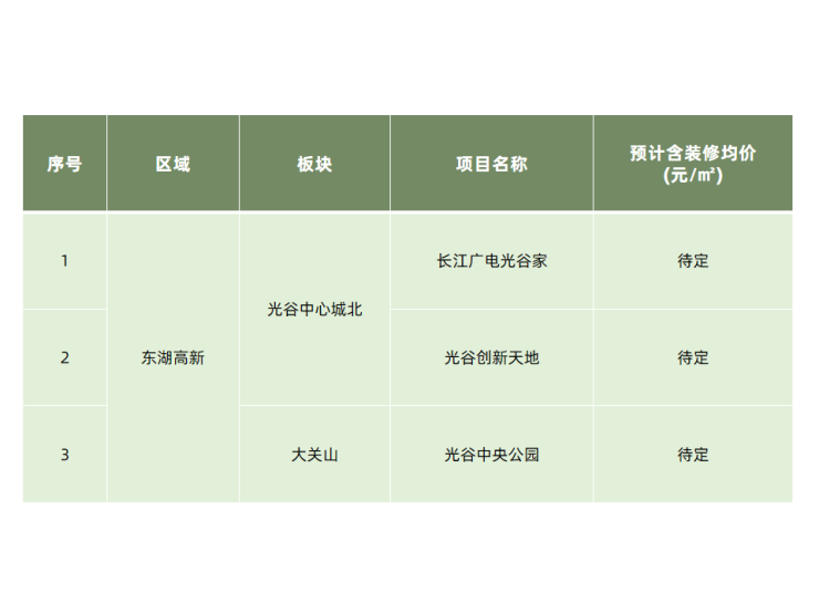 大光谷 3月预计供应3个项目,均为老盘加推,总供应约706套。