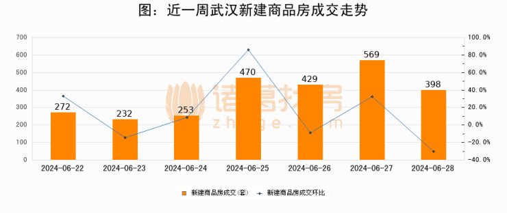 【武汉成交日报】06月28日新房成交398套;涨价房源62套