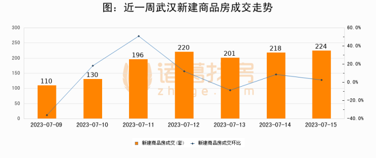 【武汉成交日报】07月15日新房成交224套;涨价房源859套