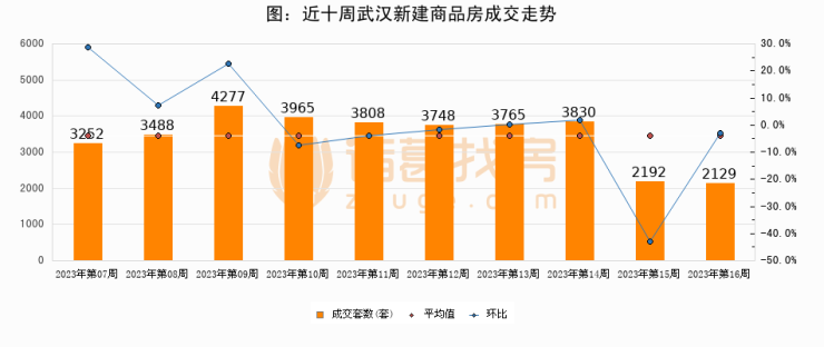 进入2023年第16周(04月10日-04月16日),武汉新建商品房成交2129套,较上周减少63套,环比下降2.9%