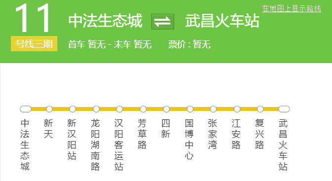 武汉地铁11号线是中国湖北省武汉市第八条建成运营的地铁线路,一期工程是东湖新技术产业开发区管委会自行投资建设的首条地铁线路,于2018年10月1日开通运营一期工程(光谷火车站至左岭站), 标志色为云鹤黄。11号线呈东西走向,西起洪山区光谷火车站站,东至洪山区左岭站,纵贯武汉东湖新技术产业开发区。1目前分为四期建设,全长约64km,目前已确定的前三期共42公里,共设站25座。