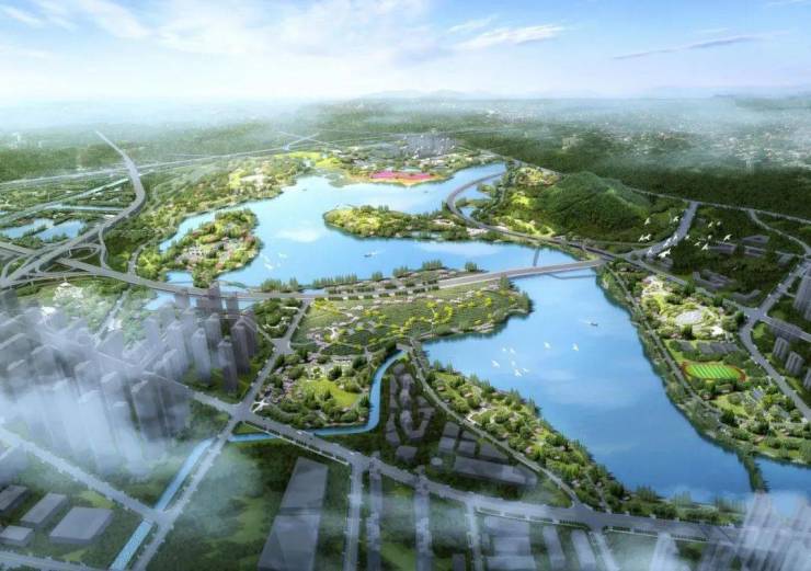 龙阳湖公园的龙阳半岛项目是整个龙阳湖公园(近期)范围中“五园”中的一园,深入龙阳湖内呈半岛形,具有280°观湖视野,是全园的景观核心。