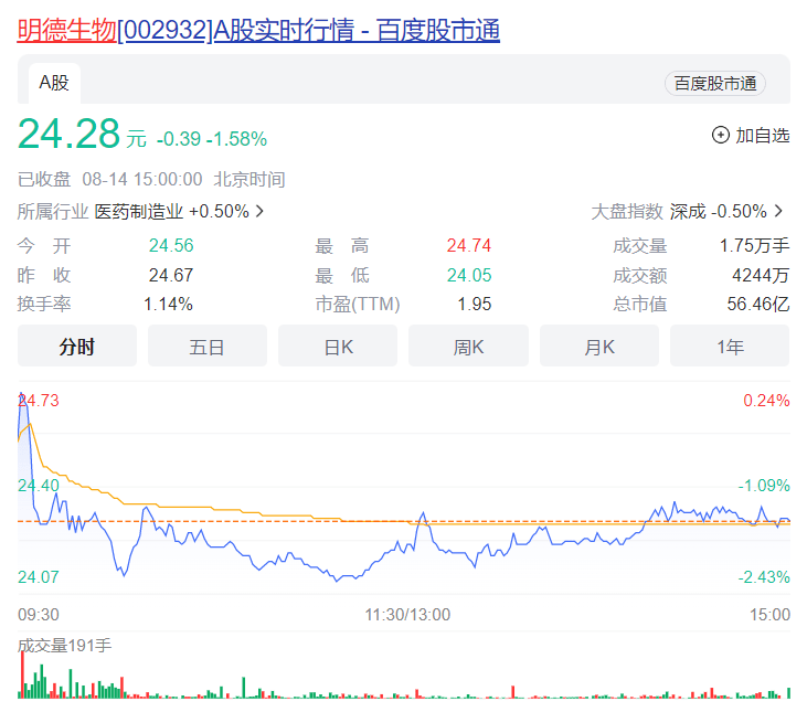 上半年业绩暴跌九成 风口过后明德生物市值缩水近83亿