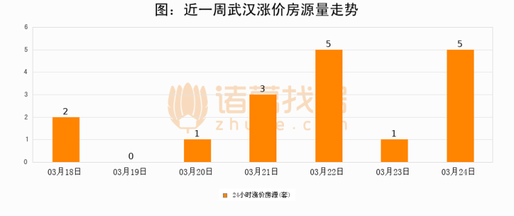 根据诸葛找房数据显示,武汉24小时涨价房源量为5套,较03月23日增加4套,环比上涨400%。与此同时,涨价房源占比小幅扩大,业主信心有所提升。