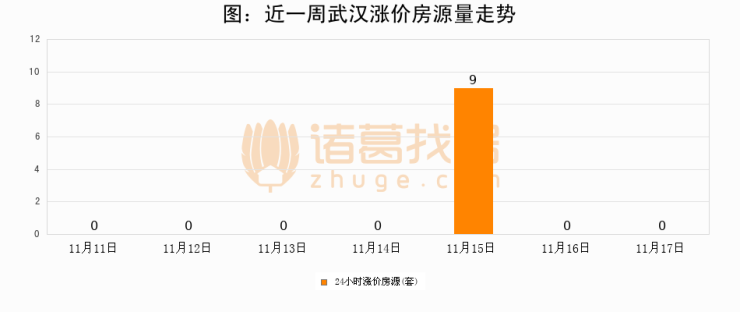 根据诸葛找房数据显示,武汉24小时涨价房源量为0套,较11月16日持平。