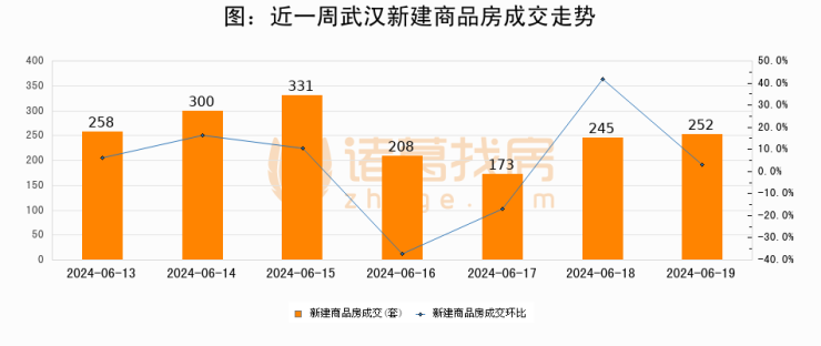 【武汉成交日报】06月19日新房成交252套;涨价房源65套
