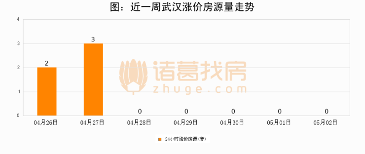 根据诸葛找房数据显示,武汉24小时涨价房源量为0套,较05月01日持平。
