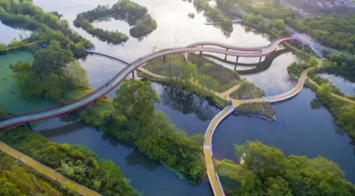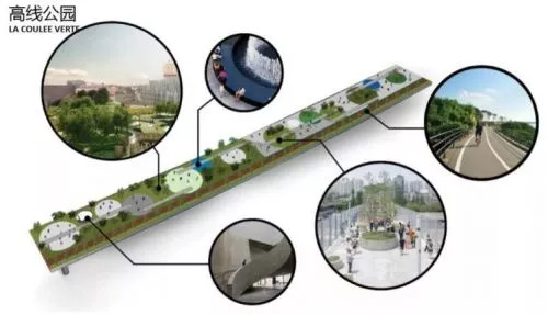 设计团队介绍,将分段处理不同主题的高线公园,形成二层人行架空步道,步行路线与胜家海和张公堤对接,确保行人和骑行者轻松到达新城的各个区域,“还能给行人不一样的景观体验”。