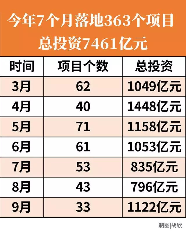 7个月共落地开工363个项目,累计总投资7461亿元。