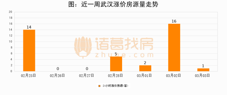 根据诸葛找房数据显示,武汉24小时涨价房源量为1套,较03月02日减少15套,环比下降93.8%。与此同时,涨价房源占比小幅回落,对于购房者来说是一个入市窗口期,购房者可抓住时机入市。